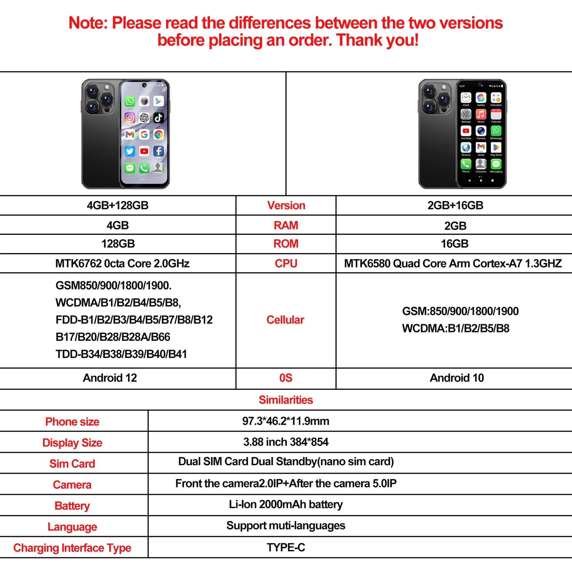 1, Please read the differences between the two versions before placing an order!